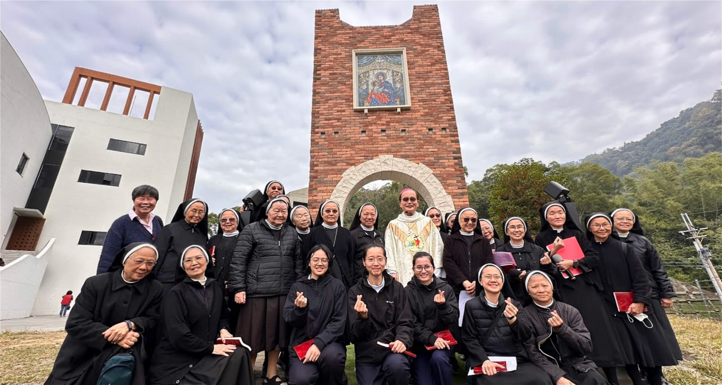山莊取名「聖愛山莊」,是因為多年前,當時總會長朱南子修女到羅馬,探望我們旅居羅馬為華人服務的修女們,她們一同到羅馬城郊的「聖愛之母朝聖地」去朝聖,那裡每天都湧現人潮。朱修女在那兒買了一百個「聖愛聖母」聖牌,要為修會求一百個聖召,他回到台灣便建議修女們恭敬「聖愛之母」,從那時起修女每天都敬禮「聖愛之母」。